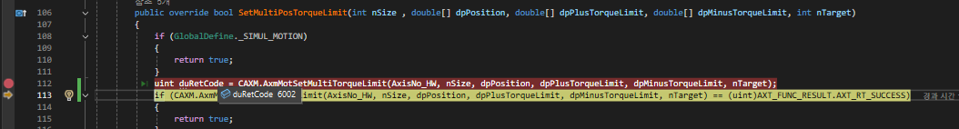 AxmMotSetMultiTorqueLimit 사용 중 알람코드 원인 및 해결방법 문의드립니다.